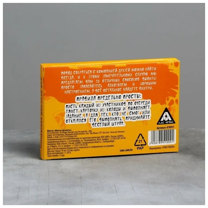 Купить игра для компании "фанты буханты" 20 карт от 100 руб. с доставкой до пункта выдачи в Крымске. Интернет магазин ДекаМаркет. Оплата при получении.